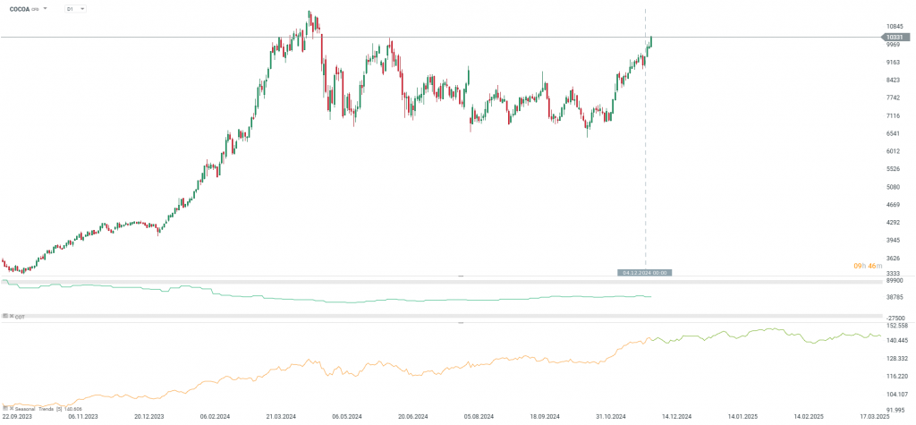 Khoảng 5 tuần trở lại đây, giá ca cao liên tục tăng mạnh và chinh phục các đỉnh lịch sử. Các chuyên gia kinh tế cho rằng, lo ngại thiếu hụt nguồn cung trên thị trường là một trong những nguyên nhân quan trọng đẩy giá mặt hàng này tăng liên tiếp và tạo đỉnh trong thời gian qua. Hiện nay thời tiết khô hạn tại khu vực sản xuất chính ở Tây Phi đã ảnh hưởng mạnh mẽ đến tâm lý kỳ vọng của thị trường về sản lượng. Trong khi đó, nhu cầu tiêu thụ không những không giảm mà lại còn tăng mạnh vào các dịp lễ. Tình hình căng thẳng này sẽ còn tiếp diễn ít nhất cho tới quý I/2025.